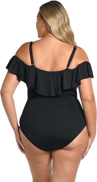 Costum de Baie Modelator – Fără Bretele cu Volănașe, Negru
