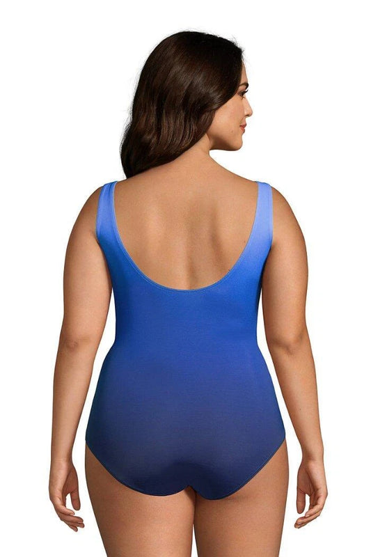 Costum de Baie Plus Size cu Fustă – SlenderSuit DDD-Cup, Negru Albastru